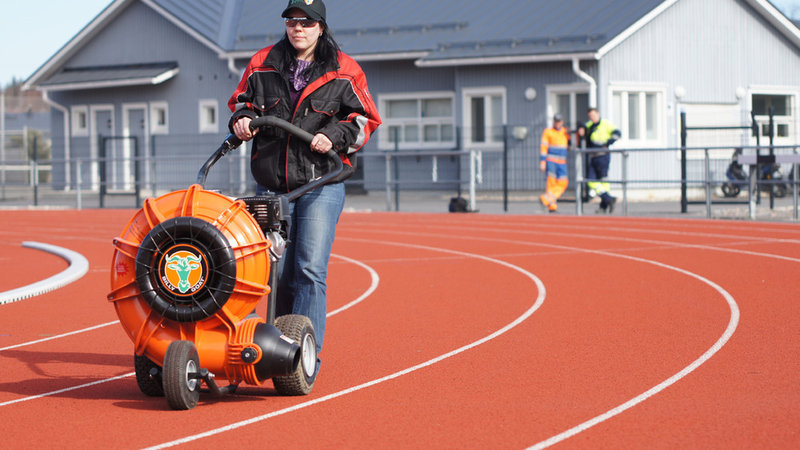 Katso video miten tehokkaasti jopa pienin F601 puhallin siirtää märkiä koivunlehtiä